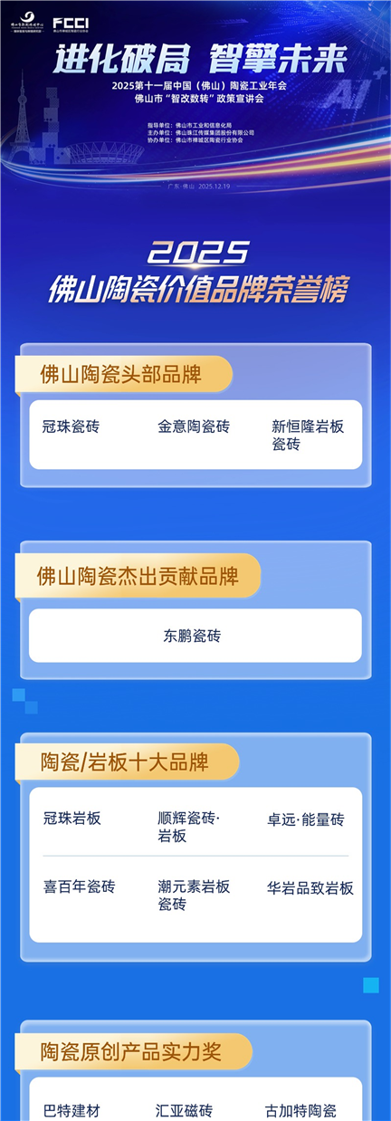 12月19日,2025第十一届中国(佛山)陶瓷工业年会、“人工智能+”陶瓷产业年度大会暨佛山市“智改数转”政策宣讲会在佛山市新闻传媒中心举行。